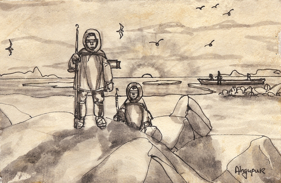 Ahgupuk pen and ink of "Eskimo Life"
