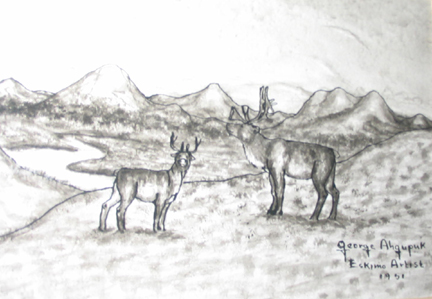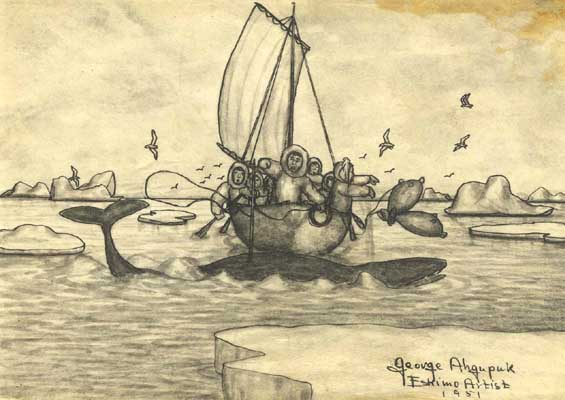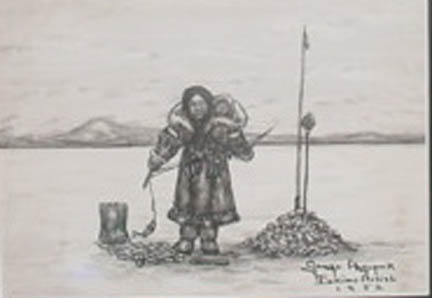 Ahgupuk originals Eskimo with rifle and dragging seal and Eskimo woman Tomcod fishing