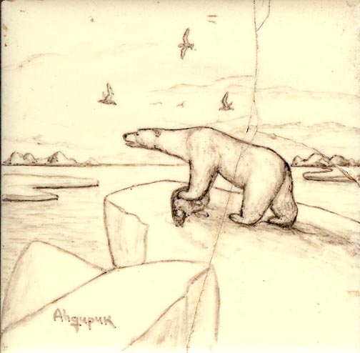 "I had these tiles made special. Bought plain tiles in town, took them to Mr. Ahgupuk, the