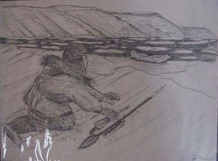 Patrick Minock originals of Eskimo and his dog along with Eskimo seal hunter