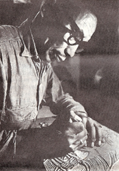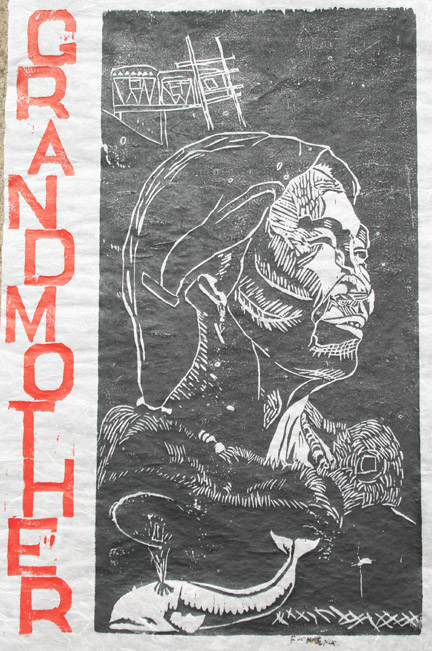 He moved to Nome in 1966. Shortly after his arrival, Bernard saw an article in the Nome Nugget describing a class in block printing. Bernard took the course. On the basis of this early work, the BIA awarded him a one-year BIA scholarship in art. At the university, Bernard explored a variety of art media and later branched out to courses in social science and other areas. Dr. Charles Keim encouraged him to work for a degree and in 1970 Bernard graduated as a Vocational Associate of the Arts.