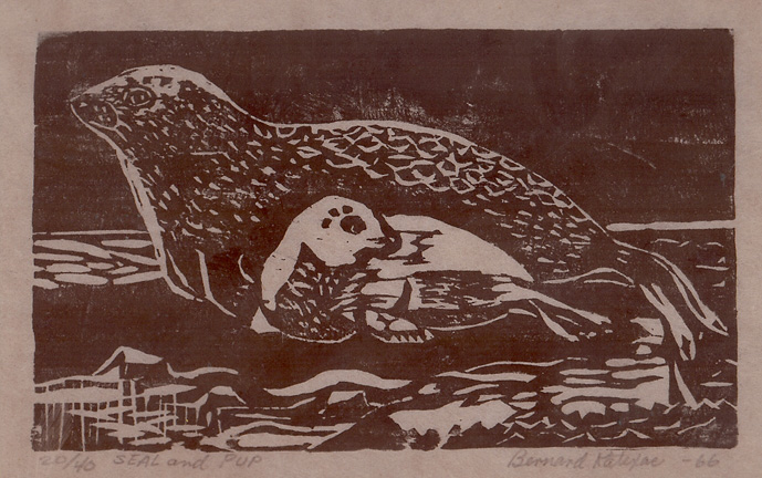 Katexac print titled “Seal and pup” – 66, meaning 1966