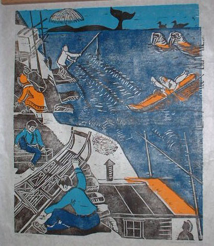 Katexac print titled “Cutting whale hide”, print # 2/35, 66, meaning 1966