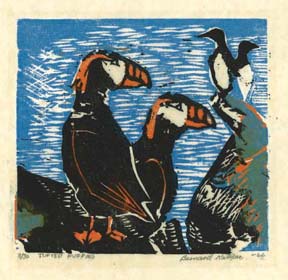 Katexac print titled “Tufted puffins”, print # 3/30, 66, meaning 1966