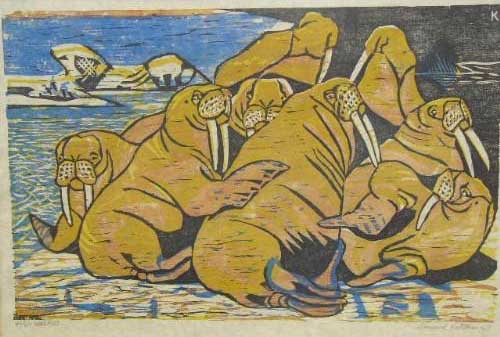 Katexac print titled “Walrus on migration”, of 800 lithographs