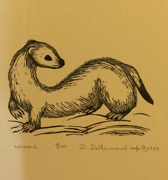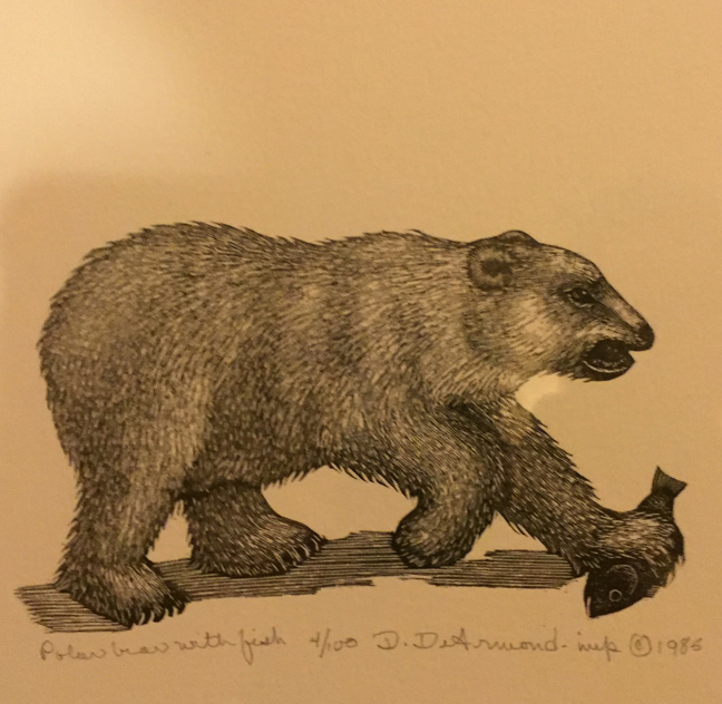 Row 1: DeArmond prints titled – “Sea Otter”, “Polar Bear”, “Confrontation” and “Weasel”