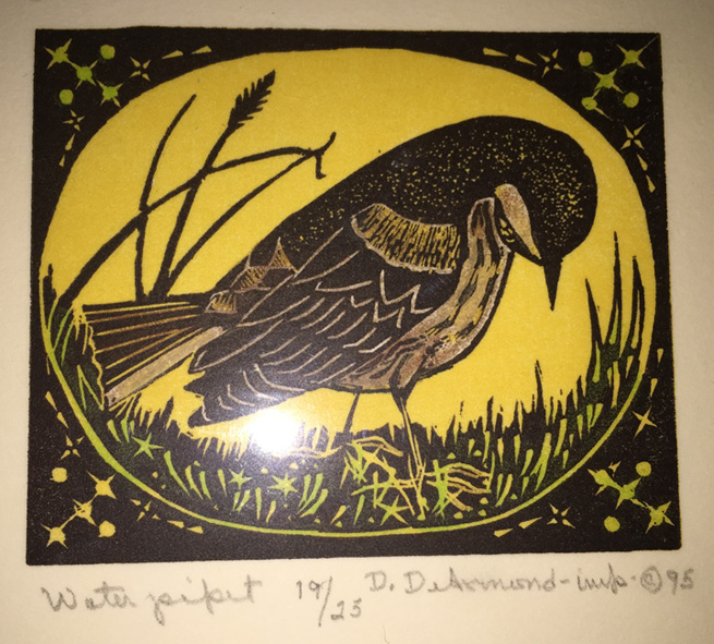 Row 1 – DeArmond print titles – “Hooded Merganser” and “Water Pipit”