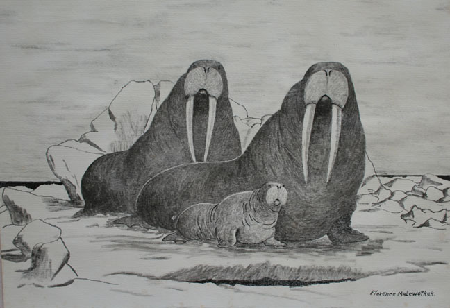Nupok Malewotkuk original of two adult walruses on ice floe