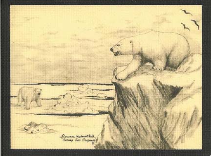 Nupok Malewotkuk originals polar bears on ice floe & polar bear and cub in the arctic