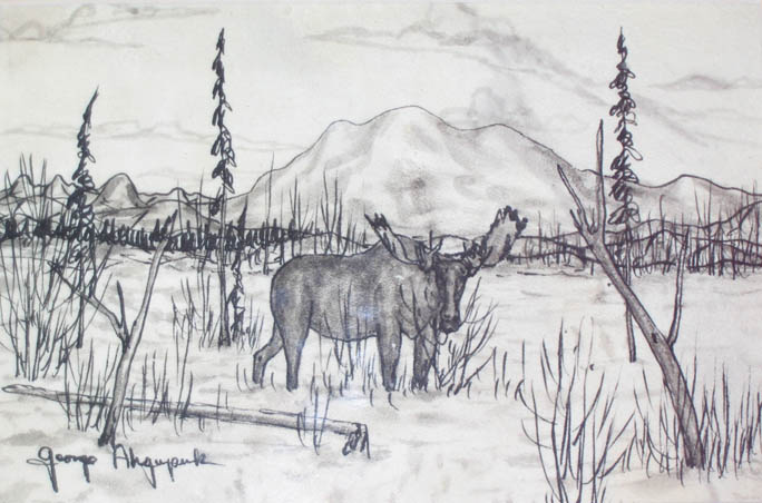 Ahgupuk original Alaskan winter moose scene