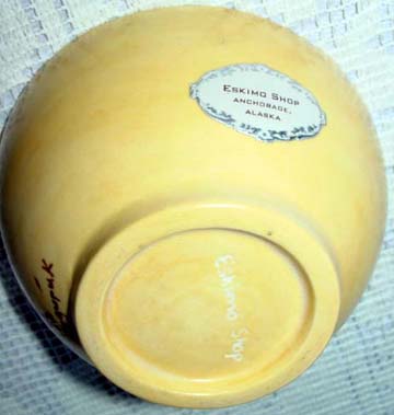 Ahgupuk caribou scene on yellow ceramic bowl