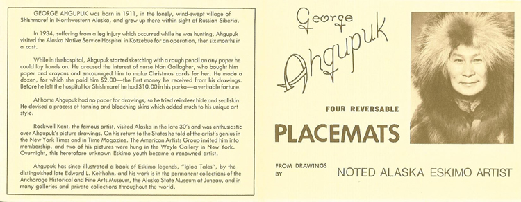 Ahgupuk artwork – plastic cover placemats “copyright mcmlxxiv by Griffin’s – Alaska
