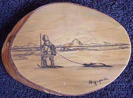 Alcraft Alaska wood with Ahgupuk eskimo hunting seal scene