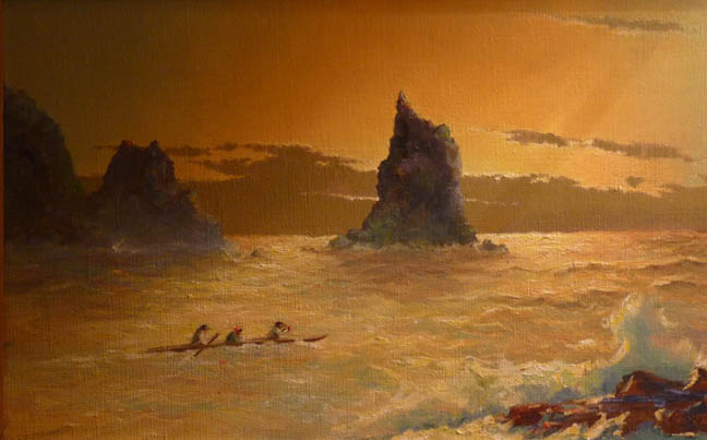 Harvey Goodale original oil painting – kayaker at sea during an Alaskan sunset