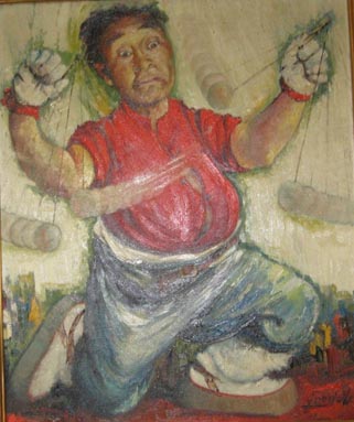 Harvey Goodale oil painting – Eskimo using an Eskimo yo-yos