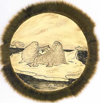 Judy Pelowook sketch of walruses on ice floe