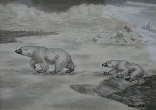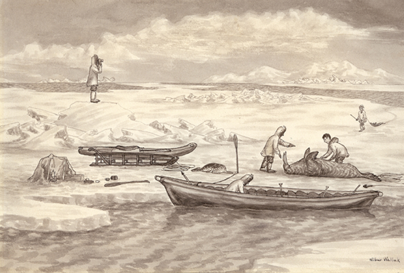 Walluk originals – polar bear stalking seal and Eskimo hunting seal by kayak