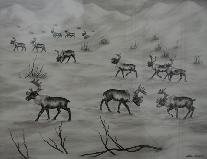 Wilbur Walluk original – caribou on the Alaska tundra